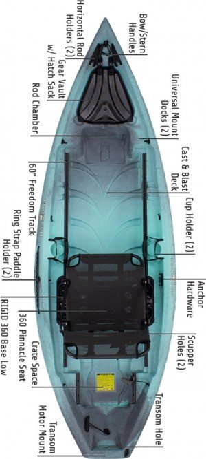 The Frontier 10 is the compact fishing kayak that is perfect for rivers and small lakes+ ponds. It combines awesome stability and stellar maneuverability, so you can spend more time fishing and less time paddling.