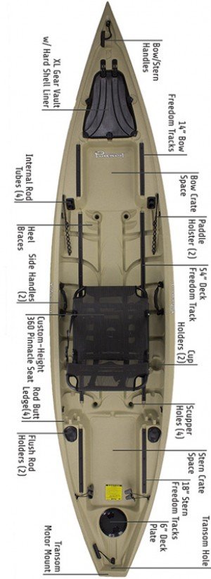 Combining speed, stability, and open space, the Pursuit provides a fishing experience without compromise. Loads of stability and great paddling performance in skinny water, open water, and moving water will take your fishing to new heights. The Pursuit’s platform-style design is packed with integrated features that allow you to customize your Pursuit – rigged up, stripped down, or anywhere in between. The Pursuit’s Custom Height 360 Seating sets a new standard for fishing kayaks – its performance and comfort are unmatched.